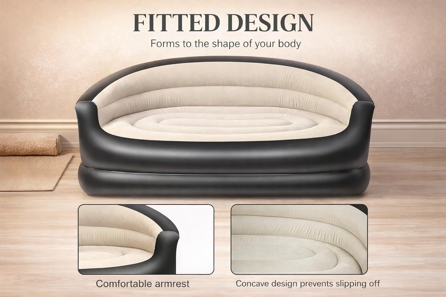 - ✅ ERGONOMIC FITTED DESIGN Designed to follow your body’s natural curves, this inflatable sofa provides excellent back and side support. The contoured backrest and armrests help you relax comfortably without slipping.